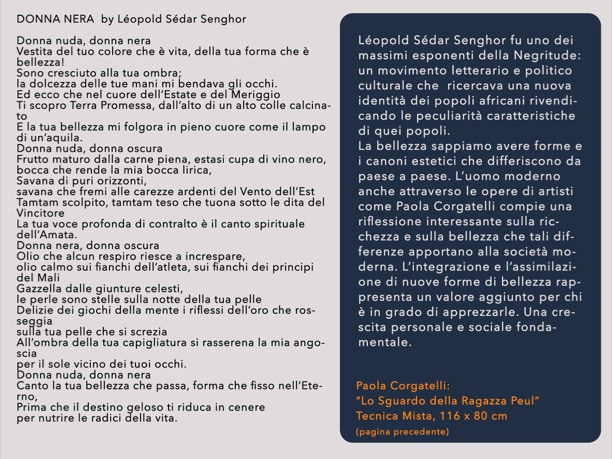 - Paola Corgatelli , “ Lo Sguardo della Ragazza Peul “, mista du tela , 116 x 80 cm, 900€.